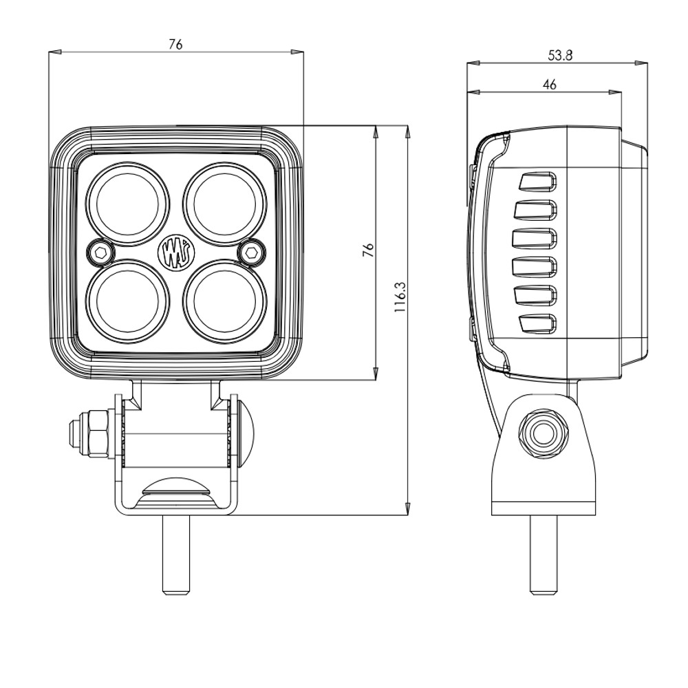 Lampa bezpieczeństwa LED WAŚ 2244 emituje intensywny czerwony punkt ostrzegawczy, wyznaczający bezpieczną strefę wokół pojazdu. Dzięki pełnej szczelności i odporności na warunki atmosferyczne, urządzenie pracuje niezawodnie zarówno w halach, jak i na zewnątrz.
