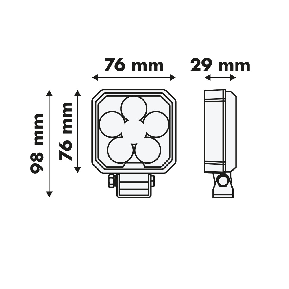 Kompaktowa, kwadratowa lampa LED o wymiarach 7,6 x 7,6 cm to wszechstronne rozwiązanie dla maszyn rolniczych, budowlanych i transportowych. Doskonale sprawdza się jako główne oświetlenie ciągnika, pomocnicze światło przy podłączaniu naczep, a także w mini koparkach, gdzie liczy się mała forma i precyzyjne oświetlenie.