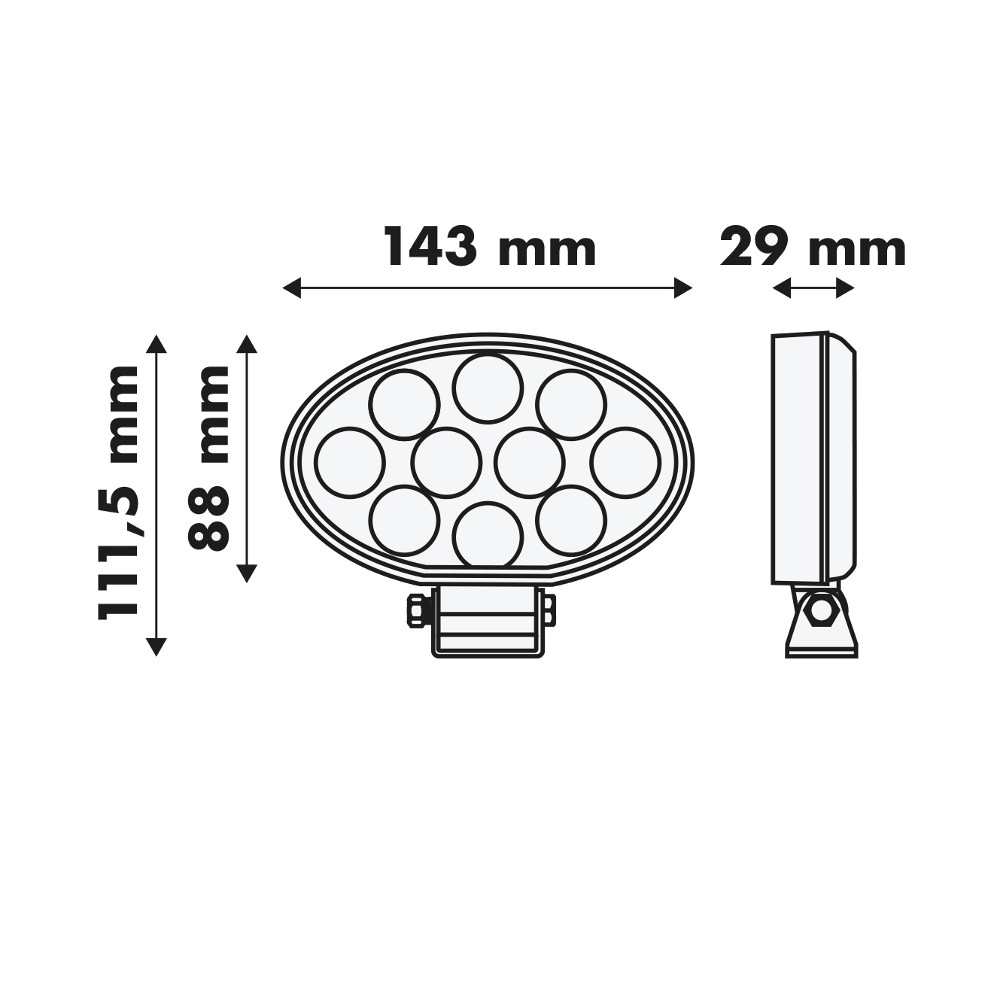 Owalna lampa LED o standardowej wielkości to praktyczne i wszechstronne rozwiązanie dla maszyn rolniczych, budowlanych oraz pojazdów specjalistycznych. Dzięki równomiernemu, rozproszonemu światłu doskonale sprawdza się jako główne oświetlenie robocze, oświetlając szerokie pole pracy i zapewniając komfort nocnej pracy.