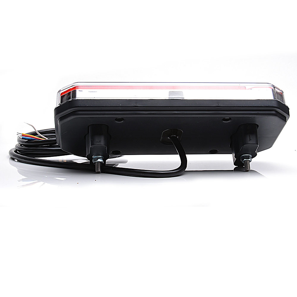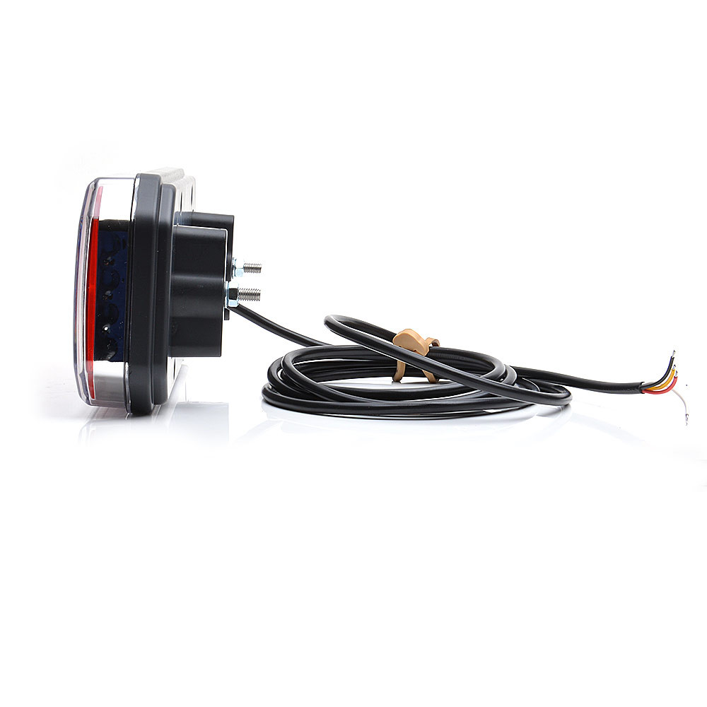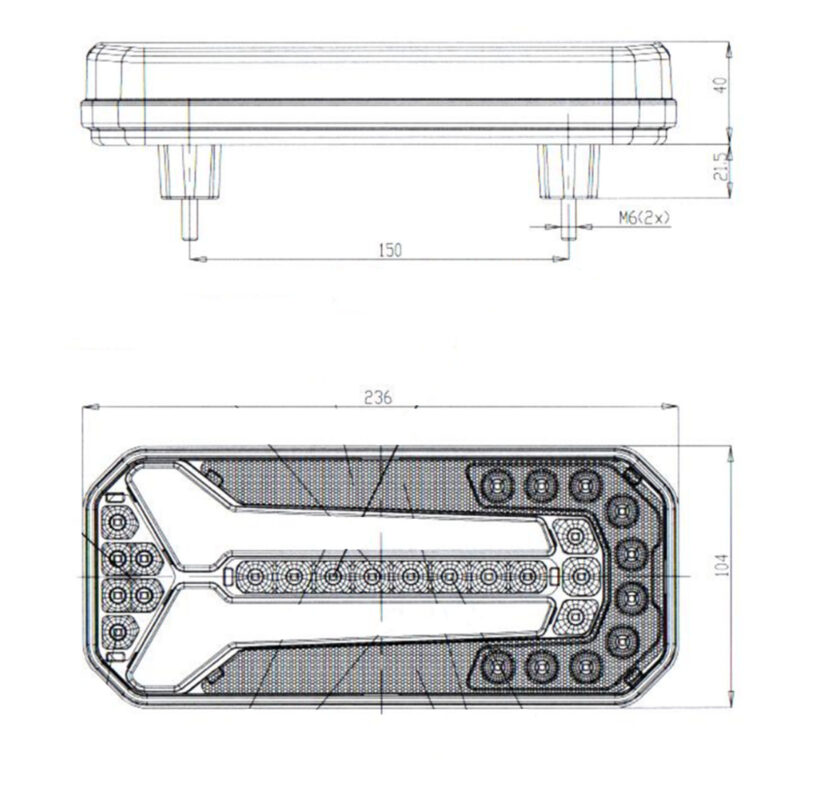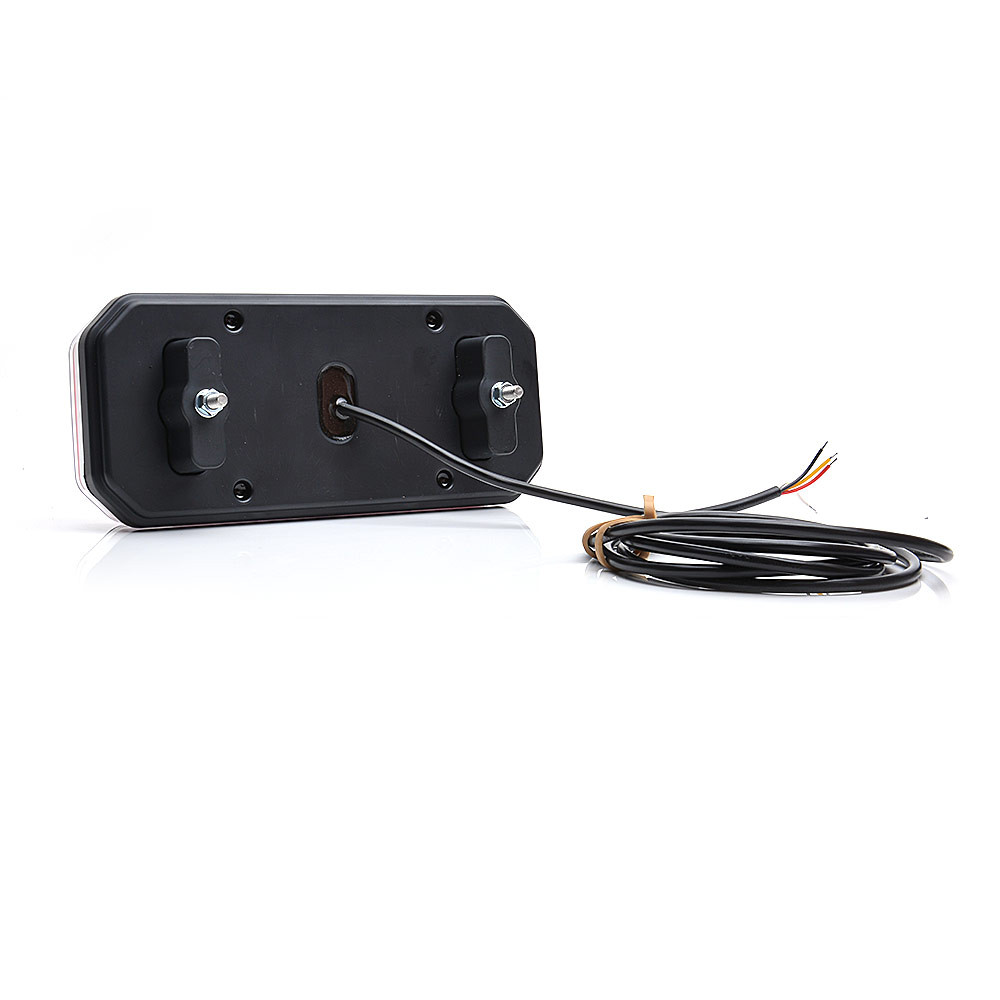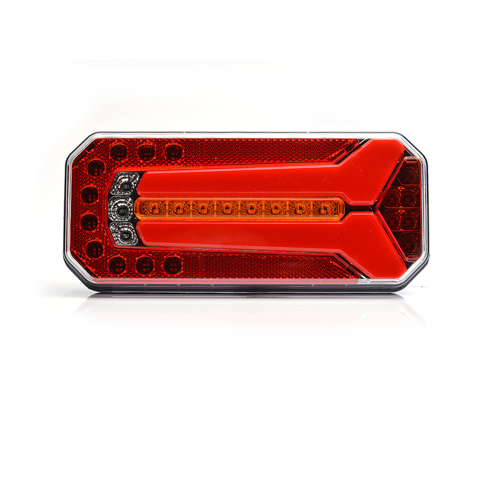 Tylna lampa WAŚ W150 /1113/ wyróżnia się nowoczesnym, zespolonym designem i efektownym neonowym światłem pozycyjnym w kształcie strzałki. Kompatybilna z instalacjami 12 V i 24 V, posiada homologację EMC oraz wysoki stopień ochrony IP66/IP68, zapewniając niezawodną pracę w każdych warunkach. Lampa jest uniwersalna – może być montowana zarówno po lewej, jak i prawej stronie pojazdu oraz w orientacji pionowej lub poziomej.